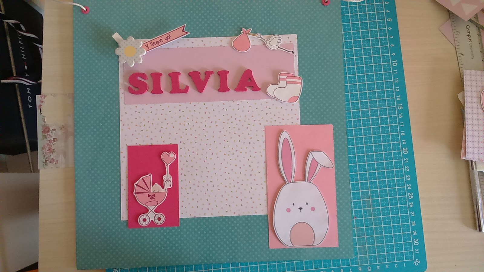Seguimos con nuestros talleres de scrap, en este caso vamos a realizar un Layout, yo este que hice, fue para la niña de una prima, los hice hace ya mucho tiempo, y este es para colgar de la pared con una cuerda.Espero que os guste y que disfrutéis de una semana scrapera y hagáis cositas diferentes.
