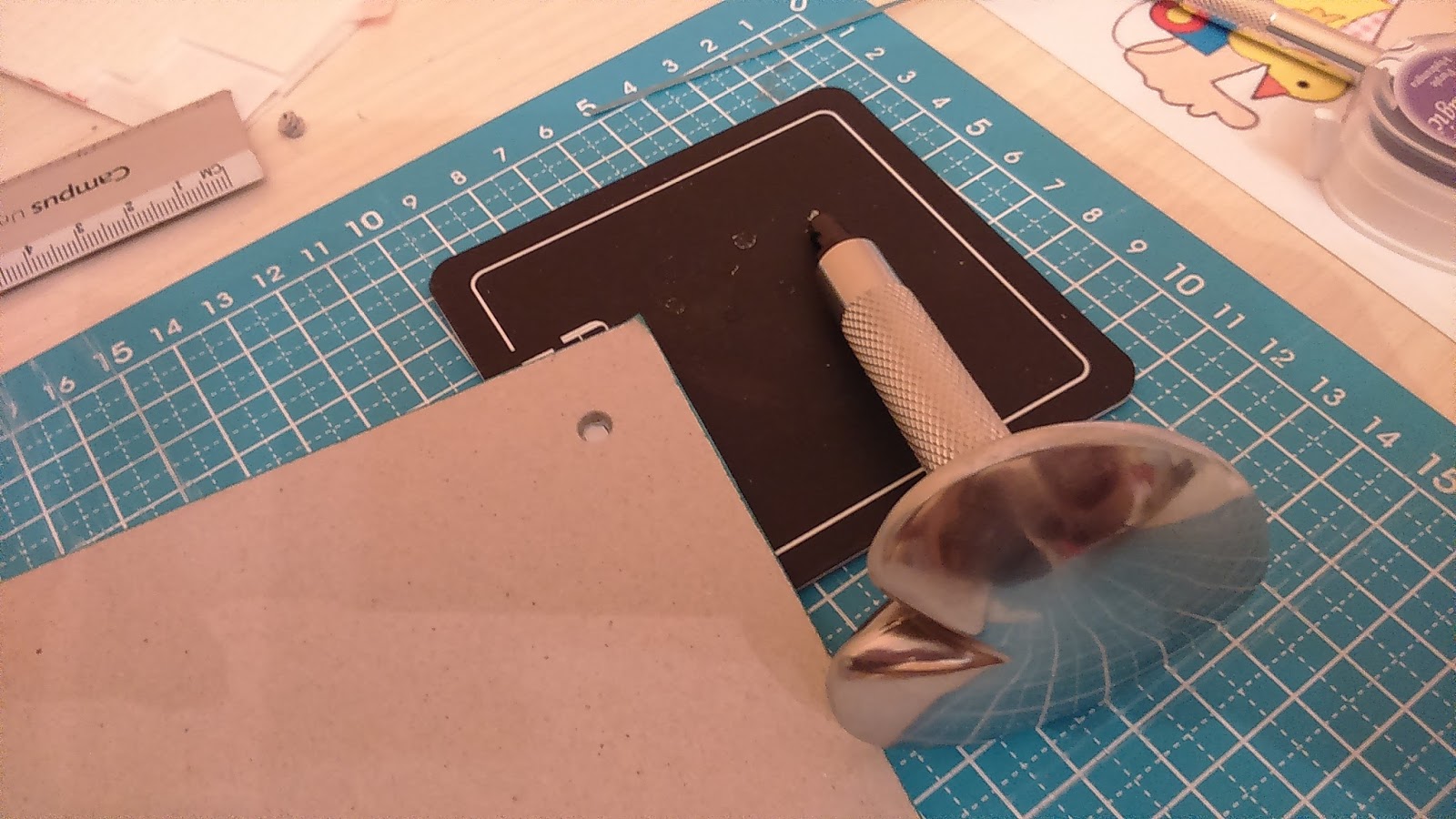 | Aquí es la parte donde le hago los agujeros, y le pongo unos ojales,